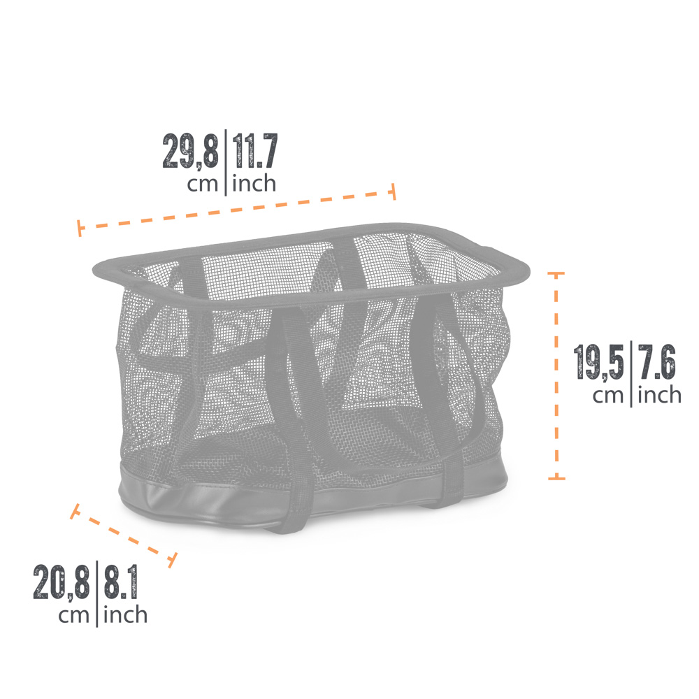 Zabierając na zakupy wkład siatkowy do torby Cooler Bag jest Twoim praktycznym towarzyszem zakupów, który pomoże Ci pilnować odpowiedniej ilości jedzenia. Złożona, aby zaoszczędzić miejsce, torba z siatki waży mniej niż 500 g i jest szybko pod ręką podczas następnej kulinarnej przygody.