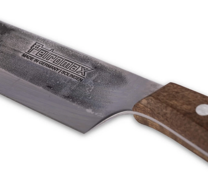 - Nóż kuchenny szefa kuchni Petromax. Wyprodukowany w Niemczech, ręcznie robiony w Solingen. Specjalna warstwa tlenku dla uzyskania wyjątkowego designu. Precyzyjne, ostre ostrze i ergonomiczna rękojeść z orzecha włoskiego. Długość 20 cm.